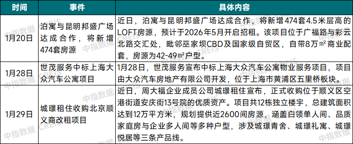市场运转:2026年1月,住房租赁市场延续淡季空气,50城室第平均房钱为34。00元/平方米/月,环比下跌0。45%,同比下跌3。67%;西安、等地房钱跌幅较大。主要关心点:上海正在盘活存量资产优化保租房供给赛道,已迈入新阶段。1月22日,上海初次启动“公保简并”试点,多个原公租房项目将同一按照保租房政策实施供应办理。2月初,上海正式了收购二手住房用于保租房的摸索,首批试点区域为静安区、浦东新区和徐汇区。从开业规模榜来看,2026年1月,TOP30集中式长租公寓企业累计开业房源量为142。5万间,取2025岁暮根基持平。具体来看,少数平易近营长租企业正在部门城市集中关停了一些长租公寓项目,其开业规模量有所下降;处所国企系长租企业开业规模仍连结稳中有增态势,正在TOP30中的规模占比提拔至24%。从办理规模榜来看,据中指研究院统计,2026年1月,TOP30集中式长租公寓企业累计办理房源量为202。7万间,较2025岁暮削减0。6万间。各类长租企业办理规模榜数据变化取开业规模榜雷同,杭州安居集团的宁巢公寓新晋上榜。1月,处所国企积极鞭策保租房某人才公寓等租赁住房项目扶植及开业运营工做,如宁波鄞州区保租房项目、贵阳产控花溪项目、天津轨道交通集团佟楼TOD保租房主侧项目等通过完工验收,承寓·和光熙悦社区、上海嘉定雨宸公寓、“中环桃乐居”保租房社区等项目先后入市。杭州安居宁巢Ning+峯阁店也正式落地,这是目前杭州市本级规模最大的“收存转保”项目,可供给1232套房源。