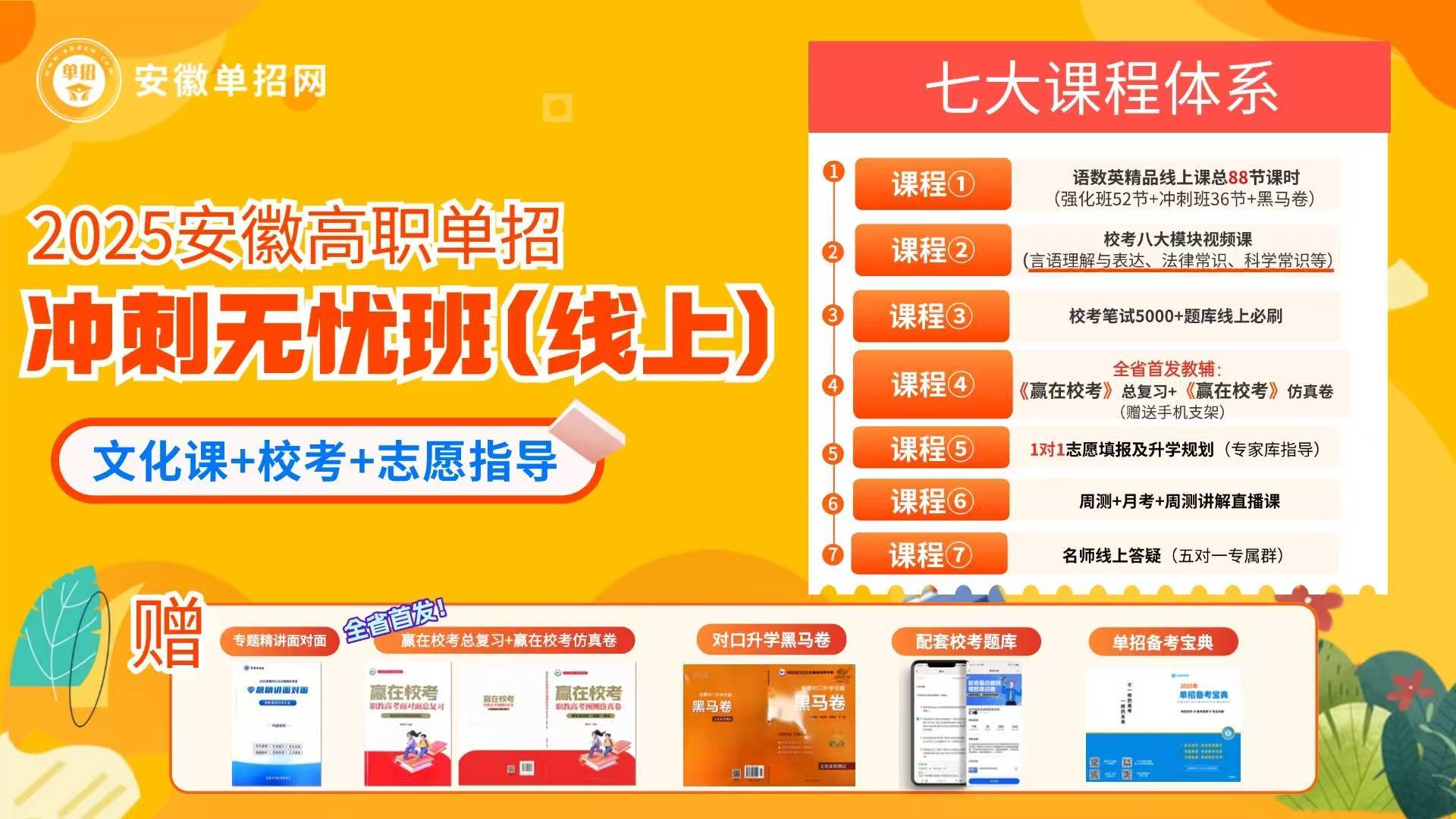 2026年安徽工业职业手艺学院分类测验采用“文化本质+职业技术”双查核模式,涵盖语文、数学、英语根本科目,满分300分。普高生准绳上以学业程度测验语文、数学、外语三科成就折算计入,中职生需加入同一测验。:加入职业顺应性测试,沉点调查逻辑思维、空间想象能力及职业素养(如“若何优化出产线流程”案例阐发)。:加入职业技术测验,内容涉及专业根本理论(如机械制图、电工电子)取实操技术(如PLC编程、CAD画图)。校考时间:2026年3月15日(普高生)、3月16日(中职生),考点设正在合肥从校区及黄山、舒城等结合培育。1。考前冲刺班(11月16日开课,费用10800元签订和谈+线下五天四晚封锁式校考集训,未被大专登科退5000元)2。线上无忧班(线上文化课培训+线下五天四晚封锁式校考培训+一对一意愿指点办事共15800元,考不上公办大专退15000元)