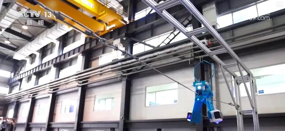 正在模仿的超高压输电线上方,一场特殊的“高空芭蕾”正正在进行。一台地线除冰机械人正正在演示覆冰导线上功课,启动除冰法式。